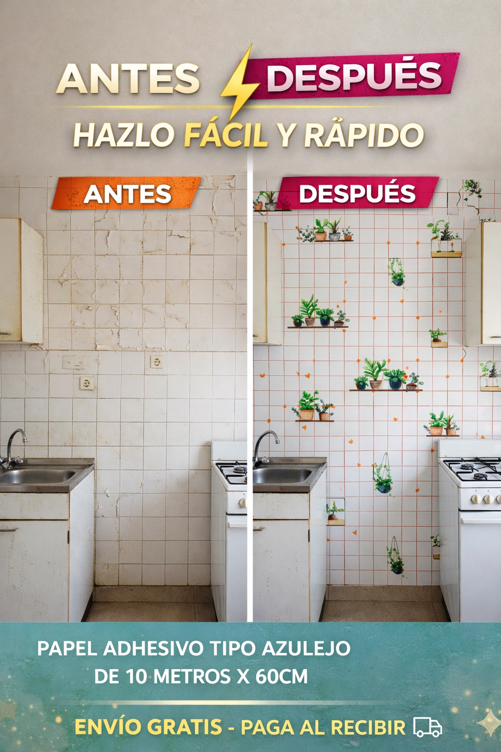 Medidas: 60 cm x 10 Mts Vinilo Adhesivo con respaldo Metalizado Brillante Para Uso en Interiores Material: PVC RECOMENDACIONES: Limpiar la superficie antes de instalar, retirar una parte del papel protector de la parte posterior y continuar con la instalación .No recomendado en paredes que tengan problemas de humedad u hongos. Ideal que las paredes estén lo más lisas y niveladas posibles. Fácil de limpiar, idealmente con paños suaves y no muy húmedos.Instalación1. Verifique que la pared este lo más lisa y limpia posible 2. Retire el papel de protección para que el adhesivo quede expuesto 3. Acomodar el papel sobre la superficie de la pared o muro y presionar